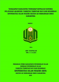 XMLArif Syaifullah, 1711102058. “Taggapan Mahasisa Terhadap Kepuasan Kinerja Pelayanan Akademik Fakultas Tarbiyah dan Ilmu Keguruan (FTIK) Universitas Islam Negeri Sultan Aji Muhammad Idris Samarinda”. Skripsi, Program Studi Manajemen Pendidikan Islam, Jurusan Pendidikan Islam, Fakultas Tarbiyah Dan Ilmu Keguruan Universitas Islam Negeri Sultan Aji Muhammad Idris Samarinda. Penulis skripsi ini di bawah bimbingan Bapak Dr. Husni Idris, M.Pd selaku pembimbing I dan Ibu Dr. Ity Rukiyah, M.Si selaku pembimbing II.