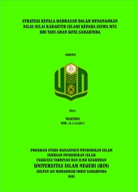 XMLWahyuni, 2023 “Strategi Kepala Madrasah dalam Menanamkan Nilai- Nilai Karakter Islami kepada Siswa MTs DDI Tani Aman Kota Samarinda”. Skripsi, Program Studi Manajemen Pendidikan Islam, Fakultas Tarbiyah dan Ilmu Keguruan, Universitas Islam Negeri Sultan Aji Muhammad Idris (UINSI) Samarinda. Penelitian ini dibimbing oleh Dr. H. Muhammad Kusasi, M.Pd selaku pembimbing I dan Wildan Saugi, M.Pd selaku pembimbing II.