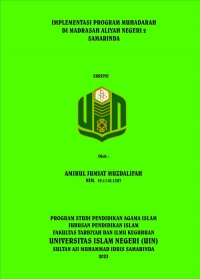 XMLAmirul Jumiat Muzdalifah, 2023. “ Implementasi Program Muhadarah di Madrasah Aliyah Negeri 2 Samarinda”. Skripsi, Program Studi Pendidikan Agama Islam, Fakultas Tarbiyah dan Ilmu Keguruan, Universitas Islam Negeri Sultan Aji Muhammad Idris (UINSI) Samarinda Penelitian ini dibimbing oleh Prof. Dr. Zurqoni. M.Ag dan Dr. H. Akhmad Ramli, M.Pd.