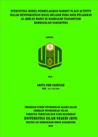Penelitian ini dilatar belakangi karena masih terdapat siswa yang bersifat pasif ketika pembelajaran berlangsung, hal ini mengakibatkan siswa yang pasif tidak berusaha untuk menyelesaikan tugas yang diberikan oleh guru jika ini terus berlanjut maka akan berdampak negatif pada hasil belajar siswa yang dibuktikan dengan nilai ujian tengah semester terdapat 3 siswa (13%) yang mendapatkan nilai tuntas. Oleh karena itu, penelitian ini bertujuan untuk mengetahui efektivitas model pembelajaran market place activity dalam meningkatkan hasil belajar pada mata pelajaran Al-Qur’an Hadis di MTs Darussalam Samarinda.
