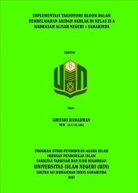 XMLGhifari Ramadhan, 2023, Implementasi Taksonomi Bloom Dalam Pembelajaran Akidah Akhlak di Kelas XI A Man 1 Samarinda. Skripsi, Program Studi Pendidikan Agama Islam, Fakultas Tarbiyah Dan Ilmu Keguruan, Universitas Islam Negeri Sultan Aji Muhammad Idris Samarinda Penelitian ini dibimbing oleh Bapak Drs. H. M. Said Husin, MA. Sebagai pembimbing I dan Bapak Wildan Saugi, M.Pd sebagai pembimbing II.