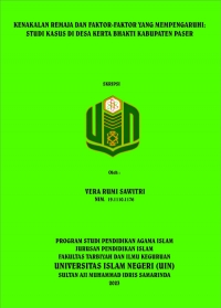 XMLVera Rumi Sawitri, 2023. “Kenakalan Remaja dan Faktor-Faktor yang Mempengaruhi(Studi Kasus di Desa Kerta Bhakti Kabupaten Paser). Skripsi, Jurusan Pendidikan Agama Islam, Fakultas Tarbiyah dan Ilmu Keguruan, Universitas Islam Negeri Sultan Aji Muhammad Idris (UINSI) Samarinda. Penelitian ini dibimbing oleh Prof. Dr. Zurqoni, M.Ag selaku pembimbing I dan Indriana Rahmawati, M.Pd selaku pemimpin II.