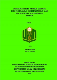 XMLUmi Kholipah, 2023 “Penerapan Metode Outdoor Learning pada Pembelajaran Ilmu Pengetahuan Alam (IPA) di Sekolah Dasar Negeri 031 Samboja”. Skripsi Program Studi Pendidikan Guru Madrasah Ibtidaiyah Fakultas Tarbiyah dan Ilmu Keguruan Universitas Islam Negeri (UIN) Sultan Aji Muhammad Idris Samarinda. Penelitian ini dibimbing oleh Marniati Kadir , M.Pd selaku pembimbing I dan Zakiyah Ulfah, M.Pd selaku pembimbing II.