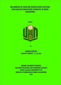 XMLNunik Novita, 2022. Measuring of English Translation Mastery for English Education Students at UINSI Samarinda. English Education Department Thesis, Teacher Training And Tarbiyah Faculty, State Islamic University of Sultan Aji Muhammad Idris Samarinda. Supervisor by Ms. Rostanti Toba, M.Pd as Advisor I, and Ms. Widya Noviana Noor as Advisor II.