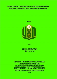 XMLAriska Rahmawati, 2023. Problematika Menghafal Al-Qur‟an di Pesantren Zawiyah Mambaul Hikam Samarinda Seberang. Skripsi, Program Studi Pendidikan Agama Islam, Universitas Islam Negeri Sultan Aji Muhammad Idris Samarinda. Penelitian ini dibimbing oleh Drs.H. Muhammad Said Husin,M.A selaku pembimbing I dan Muhammad Nasrun, M.Pd selaku pembimbing II.