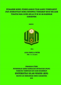 Latar belakang penelitian ini yaitu berdasarkan hasil observasi di MI Ar- Raudhah dan analisis dokumen pada RPP Tematik kelas IV, ditemukan pada RPP tematik kelas IV, telah menggunakan beberapa model, seperti penggunaan metode permainan/simulasi, diskusi, tanya jawab, penugasan dan ceramah, hanya saja ketika ditelaah ternyata sangat jarang ditemukan pembelajaran yang menggunakan metode permainan. Maka dari itu, peneliti menggunakan model pembelajaran TGT berbantuan media monopoli agar mampu menstimulus minat belajar dan kerja sama pada siswa, sehingga siswa dapat aktif ketika dalam proses pembelajaran. Penelitian ini bertujuan untuk mengetahui apakah terdapat pengaruh penggunaan model Team Games Tournament (TGT) berbantuan media monopoli terhadap minat belajar tematik pada siswa kelas IV di MI Ar-Raudhah Samarinda.