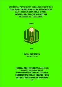 XMLZakia Sari Zahra, 2024. “Efektivitas Penggunaan Model Kooperatif Tipe Team Games Tournament dalam Meningkatkan Hasil Belajar Siswa Kelas XI pada Mata Pelajaran Al-Qur’an Hadis di MA Ma’arif NU 1 Samarinda. Skripsi, Jurusan Pendidikan Agama Islam Fakultas Tarbiyah dan Ilmu Keguruan Universitas Islam Negeri Sultan Aji Muhammad Idris Samarinda”. Penelitian ini dibimbing oleh Muhammad Iwan Abdi, M.S.I. dan Muthia Umi Setyoningrum, S.Pd., M.Pd. Tingkat pencapaian belajar sangat dipengaruhi oleh metode pembelajaran yang diterapkan guru. Ketika metode pembelajaran sesuai dengan materi yang diajarkan, siswa cenderung lebih mudah memahami materi yang diberikan. Hal ini tercermin dari hasil evaluasi ulangan semester ganjil tahun ajaran 2023/2024, dimana masih banyak siswa kelas XI di MA Ma’arif NU 1 Samarinda yang belum mencapai Kriteria Ketuntasan Minimal (KKM) pada mata pelajaran Al-Qur’an Hadis. Hal ini disebabkan oleh kurangnya pemahaman siswa. Salah satu faktornya ialah guru mata pelajaran Al-Qur'an Hadis masih menggunakan metode lama, yakni dalam proses pembelajaran guru lebih banyak aktif daripada siswa. Hal ini mengakibatkan siswa cepat merasa bosan dan tidak fokus dalam pembelajaran. Penelitian ini bertujuan untuk mengetahui efektivitas penggunaan model kooperatif tipe team games tournament terhadap hasil belajar siswa kelas XI di MA Ma'arif NU 1 Samarinda. Jenis penelitian ini adalah deskriptif kuantitatif dengan populasi penelitiannya seluruh siswa kelas XI MA Ma'arif NU 1 Samarinda yang berjumlah 40 siswa. Penelitian ini menggunakan metode quasy eksperimental dengan pengambilan sampel melalui teknik purposive sampling. Metode pengumpulan data yang digunakan dalam penelitian ini adalah tes dan dokumentasi. Teknik analisis data yang digunakan adalah Uji-t dan untuk mengukur efektivitas penggunaan model team games tournament dalam meningkatkan hasil belajar siswa kelas XI di MA Ma’arif NU 1 Samarinda dengan menggunakan uji N-Gain Score. Berdasarkan hasil perhitungan uji N-gain score diperoleh bahwa rata-rata skor N-gain kelas eksperimen adalah 69.9% termasuk dalam kategori cukup efektif. Sedangkan rata-rata skor N-gain kelas kontrol adalah 55.3% termasuk dalam kategori kurang efektif. Kemudian berdasarkan hasil analisis data dengan menggunakan Uji-t diperoleh nilai (Sig. (2-tailed)) = 0,000 < 0,05 atau thitung= 4.666 > ttabel= 2.0244 pada taraf signiikansi 5%, maka H0 ditolak dan Ha diterima. Jadi kesimpulan dari penelitian ini adalah penggunaan model kooperatif tipe team games tournament cukup efektif dalam meningkatkan hasil belajar siswa kelas XI di MA Ma’arif NU 1 Samarinda pada aspek pemahaman atau pengetahuan, namun kurang efektif pada aspek psikomotorik mengaitkan dengan keadaan sebenarnya.