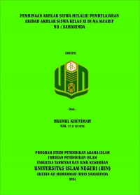 XMLHusnul Khotimah “Pembinaan Akhlak Siswa Melalui Pembelajaraan Akidah Akhlak Siswa Kelas XI Di MA Ma’arif NU 1 Samarinda”. Skripsi Program Studi Pendidikan Agama Islam (PAI), Jurusan Pendidikan Islam, Fakultas Tarbiyah dan Ilmu Keguruan (FTIK), Universitas Islam Negeri Sultan Aji Muhammad Idris (UINSI) Samarinda Penelitian ini dibimbing oleh Ibu Hj. Ananiah, M. M.Pd. selaku dosen pembimbing I dan bapak Wildan Saugi, M.Pd. Pendidikan merupakan kebutuhan yang mutlak yang harus dipenuhi, karena pada hakikatnya pendidikan adalah kebutuhan setiap individu dalam meningkatkan, mengembangkan, dan mengarahkan kehidupannya di masa yang akan datang. sehingga dapat menghadapi perubahan zaman. pendidikan juga memiliki peran penting dalam kehidupan suatu bangsa guna menjamin kontinuitas hidup bangsa, sebab maju mundurnya suatu bangsa bergantung dari kemajuan pendidikan di dalam bangsa itu sendiri Akhlak (khuluq) adalah sifat yang tertanam dalam jiwa manusia, sehingga ia akan muncul secara langsung (spontan) bilamana diperlukan, tanpa memerlukan pemikiran atau pertimbangan lebih dulu, serta tidak memerlukan dorongan dari luar. pembinaan akhlak sangat dibutuhkan siswa dari mereka kecil hingga mereka dewasa. agara kelak jika mereka sudah memasuki usia dewasa atau tua mereka bisa mengajarkannya kepada adik-adik mereka atau orang yang ada di sekitar mereka. Dengan adanya pembinaan akhlak siswa diharapkan manpu untuk merapkannya di sekolah maupun di lingkungan sekitar mereka. Jenis penelitian ini adala penelitian lapangan (field research) yang bersifat deskriptif kualitatif yaitu pengumpulan data dilakukan di lapanga, untuk memahami fenomena-fenomena social dan pandangan perilakunya.Berdasarkan hasil observasi, wawancara, dan dokumentasi yang peneliti telah lakukan dalam pelaksnaan pembinaan akhlak siswa MA Ma’arif Nu 1 Samarinda melalui kegiataan keagamaan siswa, maka diperoleh data bahwa ada beberapa kegiatan yang dilaksanakan di Madrasah Aliyah Ma’arif Nu 1 Samarinda. yang di ungkapkan oleh ibu Tity Safitrie beliau mengatakan sebagai berikut : Pembinaan akhlak siswa di MA Ma’arif Nu 1 Samarinda disesuaikan dengan visi dan misi Madrasah yaitu Memiliki Aqidah yang lurus Terbina dengan Akhlak yang mulia. pembinaan akhlak yang dilaksanakan di Madrasah ini dengan melalui kegiatan keagamaan harian seperti, sholat dhuda, sholat dzuhur, membaca Al-qur’an, dan pembiasaan seperti senyum, sapa, salam. Kegiatan mingguan yaitu ekstra kulikuler. Hasil wawancara tersbut meNunjukkan bahwa terdapat beberapa kegiatan keagamaan yang dilaksanakan terkait dengan pembinaan akhlak siswa di Madrasah Aliyah Ma’arif Nu 1 Samarinda yaitu kegiatan harian, kegiatan mingguan, dan kegiatan bulanan.taat kepada Allah Swt, dengan membiasakan siswa untuk menjalankan ibadah kepada Allah Swt, dengan mengadakan sholat berjama’ah di musholla Madrasah. Akhlak kepada sesama yaitu menjaga hubungan yang baik kepada sesama seperti menghargai dan sopan santun terhadap guru maupun teman.