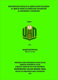XMLMaghfiratunnisa, 2024. “Implementasi Hafalan Al-Quran Mata Pelajaran Al-Quran Hadis Di Madrasah Tsanawiyah Al-Mujahidin 2 Samarinda.” Skripsi, Program Studi Pendidikan Agama Islam, Jurusan Pendidikan Islam, Fakultas Tarbiyah dan Ilmu Keguruan, Universitas Islam Negeri Sultan Aji Muhammad Idris Samarinda. Penelitian ini dibimbing oleh Bapak Dr. Khojir M.SI dan Ibu Rega Armella, M.Pd. Latar belakang penelitian ini adalah mata pelajaran al-Quran hadis berkaitan dengan menghafal, membaca dan memaknai isi dari al-Quran dan hadis. sehingga ditemukannya siswa yang merasa sulit dan jenuh dengan materi al-Quran hadis, hal ini disebabkan siswa tidak menyukai hafalan dan lebih menyukai teori, dan beberapa siswa memiliki perhatian khusus dalam membaca dan menghafal al-Quran. Permasalahan yang akan dibahas ialah bagaimana implementasi hafalan al-Quran dalam mata pelajaran al-Quran hadis dan apa saja faktor penghambat dan pendukung dalam implementasi hafalan al-Quran mata pelajaran al-Quran hadis di Madrasah Tsanawiyah Al-Mujahidin 2 Samarinda. Adapun tujuan dari penelitian ini ialah untuk mengetahui implementasi hafalan al-Quran dan faktor penghambat dan pendukung implementasi hafalan al-Quran mata pelajaran al-Quran hadis di Madrasah Tsanawiyah Al-Mujahidin 2 Samarinda. Jenis penelitian deskriptif kualitatif. Sumber data penelitian ini adalah kepala madrasah, waka kurikulum, guru al-Quran hadis sekaligus guru pengampu setoran hafalan siswa, dan 5 siswi kelas VIII-B. Teknik pengumpulan data diperoleh dari observasi, wawancara, dan dokumentasi. Adapun teknik analisis data yang digunakan yaitu kondensasi data, penyajian data, dan penarikan kesimpulan. Uji keabsahan data melalui triangulasi sumber, triangulasi teknik, triangulasi waktu, dan melakukan member check. Hasil penelitian menunjukkan Implementasi hafalan al-Quran di Madrasah Tsanawyah Al-Mujahidin 2 Samarinda merupakan salah satu program unggulan yang dilaksanakan setiap satu minggu sekali pada mata pelajaran al-Quran hadis. Untuk sistem pelaksanaannya pada jam 07.30-08.30 dan 12.40-13.20. Kelas VII dilaksanakan pada hari Kamis, kelas VIII hari Selasa, dan kelas IX pada hari Rabu. Pengampu setoran hafalan al-Quran diberikan kepada guru mata pelajaran al-Quran hadis. Seluruh siswa Madrasah Tsanawiyah Al-Mujahidin 2 Samarinda wajib untuk mengikuti program hafalan al-Quran. Adapun metode yang digunakan siswa ialah metode wahdah, murajaah, dan metode talaqqi. Evaluasi dilakukan pada akhir semester pada saat pembagian rapot dengan kriteria kelulusan yang harus dimiliki siswa ialah kelancaran, kesesuaian bacaan dan ilmu tajwid, dan fasahah, dan untuk siswa yang telah menyelesaikan target hafalan al-Qurannya akan diberikan sertifikat dari pihak madrasah. Faktor pendukung implementasi hafalan al-Quran meliputi faktor motivasi, faktor kecerdasan, sedangkan faktor penghambatnya ialah faktor lingkungan, tidak sabar, dan tidak menguasai makhorijul huruf.