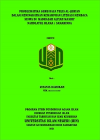 XMLRiyanis Barokah, 2024. “Problematika Guru Baca Tulis Al-Qur’an dalam Meningkatkan Kemampuan Literasi Membaca Siswa di MA Ma’arif Nahdlatul Ulama 1 Samarinda”. Skripsi, Program Studi Pendidikan Agama Islam, Jurusan Pendidikan Islam, Fakultas Tarbiyah dan Ilmu Keguruan, Universitas Islam Negeri Sultan Aji Muhammad Idris (UINSI) Samarinda. Penelitian ini dibimbing oleh Bapak Muhammad Iwan Abdi, M.S.I. dan Bapak Dr. Kautsar Eka Wardhana, M.Pd. Penelitian ini dilatar belakangi oleh masih ditemukannya siswa yang belum dapat membaca Al-Qur’an sesuai kaidah yang benar. Salah satu upaya yang dilakukan oleh MA Ma’arif NU 1 Samarinda untuk meningkatkan kemampuan literasi membaca Al-Qur’an pada siswa adalah dengan diadakannya program baca tulis Al-Qur’an (BTQ). Penelitian ini bertujuan untuk mendeskripsikan permasalahan yang dihadapi guru baca tulis Al-Qur’an dalam meningkatkan kemampuan literasi membaca siswa di MA Ma’arif NU 1 Samarinda dan untuk mendeskripsikan upaya guru baca tulis Al-Qur’an dalam meningkatkan kemampuan literasi membaca siswa di MA Ma’arif NU 1 Samarinda. Jenis penelitian yang digunakan pada penelitian ini adalah deskriptif kualitatif dengan teknik pengumpulan data menggunakan teknik observasi, wawancara, dokumentasi, dan tes. Sumber data pada penelitian ini adalah Kepala madrasah, guru BTQ, dan siswa. Adapun teknik analisis data menggunakan analisis data menurut Miles dan Huberman berupa reduksi data, penyajian data, dan penarikan kesimpulan. Teknik keabsahan data yang digunakan berupa triangulasi sumber dan triangulasi metode. Hasil penelitian menunjukkan bahwa: (1) Permasalahan yang dihadapi guru BTQ dalam meningkatkan kemampuan literasi membaca siswa di MA Ma’arif NU 1 Samarinda yaitu sebagai berikut: (a) Dalam pelafalan makhraj siswa mengalami kesulitan dalam penyebutan huruf ‘ain (ع), dzal (ذ), zho’ (ظ), dhod (ض), dan shod (ص), (b) Dalam kurangnya penguasaan tajwid siswa yaitu siswa kurang inisiatif dalam membaca materi tentang tajwid, dan siswa mengalami kesulitan dalam hukum tajwid mim mati, tafkhim, dan tarqiq, (c) Dalam kurang lancarnya membaca Al-Qur’an siswa disebabkan keterbatasan jam pelajaran BTQ, siswa tidak konsisten mengikuti pembelajaran BTQ, dan intensitas siswa dalam membaca Al-Qur’an. (2) Upaya guru BTQ dalam meningkatkan kemampuan literasi membaca siswa di MA Ma’arif NU 1 Samarinda adalah sebagai berikut: (a) Untuk meningkatkan kemampuan siswa dalam pelafalan makhraj yaitu guru meminta siswa untuk mengulang-ulang bacaan Al-Qur’an yang telah diajarkan, (b) Untuk meningkatkan kemampuan siswa dalam penguasaan tajwid yaitu guru memberikan penugasan terkait hukum bacaan tajwid, dan guru melakukan tes kemampuan bacaan tajwid siswa, (c) Untuk meningkatkan kemampuan siswa dalam kelancaran membaca Al-Qur’an adalah guru memberikan motivasi dan mengingatkan siswa agar konsisten mengikuti pembelajaran BTQ, serta guru melakukan tes praktik bacaan Al-Qur’an siswa.