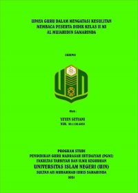 XMLYeyen Setiani, 2024. “Upaya Guru dalam Mengatasi Kesulitan Membaca Peserta Didik Kelas II MI Al Mujahidin Samarinda”. Skripsi, Program Studi Pendidikan Guru Madrasah Ibtidaiyah, Jurusan Pendidikan Madrasah, Fakultas Tarbiyah dan Ilmu Keguruan, Universitas Islam Negeri (UIN) Sultan Aji Muhammad Idris Samarinda. Penelitian ini dibimbing oleh ibu Juhairiah, M.Pd. selaku dosen pembimbing I, dan ibu Nur Syamsi, M.Pd. selaku dosen pembimbing II. Penelitian ini dilatarbelakangi oleh suatu permasalahan yang terjadi di MI Al Mujahidin Samarinda yaitu rendahnya kemampuan membaca pada peserta didik yang dikhawatirkan semakin menurunnya kualitas sekolah. Sudah menjadi tugas seorang guru dalam berupaya mengatasi kesulitan membaca. Oleh karena itu tujuan dari penelitian ini yaitu untuk mengetahui upaya yang digunakan guru dalam mengatasi kesulitan membaca, dan mengetahui faktor pendukung serta penghambat dalam mengatasi kesulitan membaca peserta didik kelas II MI Al Mujahidin Samarinda. Metode penelitian ini adalah deskriptif kualitatif yaitu mendeskripsikan hasil penelitian dalam bentuk narasi atau kata-kata. Teknik pengumpulan data yang digunakan yaitu observasi, wawancara, dan dokumentasi. Teknik analisis data pada penelitian ini yaitu pengumpulan data, reduksi data, penyajian data dan kesimpulan. Berdasarkan hasil penelitian yang ditemukan di MI Al Mujahidin Samarinda, peneliti menyimpulkan bahwa upaya guru dalam mengatasi kesulitan membaca peserta didik kelas II MI Al Mujahidin Samarinda, yaitu: 1. Mengadakan kelas tambahan khusus peserta didik kelas II MI Al Mujahidin Samarinda yang mengalami kesulitan membaca. 2. Menggunakan metode mengeja untuk mempermudah dalam proses belajar membaca. 3. Menggunakan metode pembelajaran berbasis suara. 4. Menggunakan metode membaca bersama. Kemudian faktor pendukung dalam mengatasi kesulitan membaca yaitu 1. Adanya pemberian motivasi membaca oleh guru kelas kepada peserta didik terutama peserta didik yang mengalami kesulitan membaca, 2. Adanya dukungan dari kepala sekolah seperti pemberian motivasi membaca oleh kepala sekolah, dan juga memberi dukungan dengan adanya upaya upaya yang diadakan oleh guru kelas II MI Al Mujahidin, 3. Dukungan dari orang tua seperti ikut serta mengajarkan anak membaca di rumah. Kemudian faktor penghambatnya yaitu 1. Kurangnya kerja sama antara guru dengan wali murid, 2. Kurangnya motivasi minat baca dari peserta didik itu sendiri.