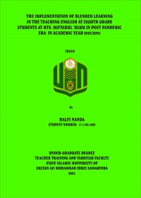 Halfi Nanda. 2024. “The Implementation of Blended Learning in the Teaching English at Eighth Grade Students at MTs. Miftahul ‘Ulum in Post Pandemic Era.” Thesis, English Education Department, Teacher Training and Education Faculty, State Islamic University Sultan Aji Muhammad Idris Samarinda. This research is under the guidance of Mrs. Rostanti Toba, M. Pd as the first advisor and Ms. Anis Komariah, M. Pd as the second advisor. Blended Learning became famous during the pandemic era, which schools around the world implemented. Blended Learning was one of the instructional models executed during the new normal a circumstance where understudies can concentrate face-to-face and online further supported by certain specialists' assertions. The surge in blended learning adoption during the global pandemic prompted an examination of its application at MTs. Miftahul U’ulum. The researcher will try to explore and compare the implementation of blended learning at MTs. Muttahul U’ulum after the pandemic era. Utilizing a qualitative research design focused on descriptive analysis, and the research engaged the English teachers at MTs Miftahul ‘Ulum as the primary participants. The sole participant in this research was the English teacher at MTs. Miftahul ‘Ulum. Data collection involved a combination of interviews and observations conducted by the researcher to address the research questions. Descriptive analysis was employed to explain the findings from the interviews and observations to provide a comprehensive understanding of the implementation of blended learning. The finding of this research revealed that blended learning was well-implemented in the classroom the results provided a comprehensive understanding of blended learning in the context of teaching English at eighth grade student at MTs. Miftahul ‘Ulum. The research emphasizes the teacher's strategies in implementing blended learning, emphasizing the dynamic synergy between online tools and traditional classroom elements. Notably, the study extracted the factors routing the hold of blended learning, revealing the teacher's adeptness in adapting and responding to the technology alongside the distinctive requirements of the students. This research found that in term of interview that the effectiveness of blended learning was effective. This finding is in line with Tong, Uyen, and Ngan, who stated that blended learning had a positive impact on the teaching and learning process. Furthermore, the use of blended learning could not be separated from teachers who use blended learning in teaching English. The teacher should plan the content, provide individualized support, inquire about students progress and obstacles, get along with students, and facilitate blended learning.