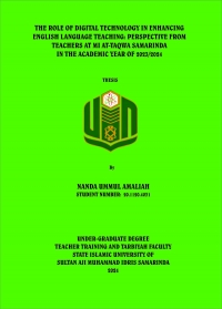 XMLNanda Ummul Amaliah, 2024. The Role of Digital Technology in English Language Teaching: Perspective from Teachers at MI At-Taqwa in Academic Year 2023/2024. Undergraduate Degree. Thesis, Education and Teacher Training Faculty, State Islamic University of Sultan Aji Muhammad Idris Samarinda. Advisor, Mrs Dina Destari, S. S., M. Pd is the first advisor, and Mrs Nadia Sya’ya, M. Pd., M. TESOL is the second advisor. Digital technology has transformed education. English instruction requires digital tools. Digital learning teachers must match these conditions with their roles and tools. In teaching English, there is also a need for digital technology that includes tools to support learning at school. Therefore, not only the tools but also the role of a teacher when applying digital technology to learning that suits these conditions. This research examines first, MI At-Taqwa Samarinda English teachers' digital technology roles. Second, assessing English instruction technology's benefits and challenges. Third, MI At-Taqwa Samarinda teaching- learning effects. This research is qualitative descriptive research. The data was collected through observation, interviews, and documentation. Data condensation, display, and conclusions are used in this research. It included two MI At-Taqwa Samarinda English teachers. This research shows that digital technology is essential to learning and teaching, such as motivating students, and that teachers' roles in digital technology cannot be separated from their roles as facilitators and companions, making them easy to relay material. Limited learning and teaching facilities plague teachers. The impact felt by teachers and students in the teaching and learning process is that it becomes easier for teachers to explain the material.