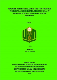XMLNurfina, 2022, “ Pengaruh Model Pembelajaran Two Stay Two Satry terhadap hasil belajar siswa tematik siswa kelas IV Madrasah Ibtidaiyah Sullamul Hidayah Samarinda”. Skripsi, Program Studi Pendidikan Guru Madrasah Ibtidaiyah, Jurusan Pendidikan Madrasah, Fakultas Tarbiayah dan Ilmu Keguruan, Universitas Islam Negri Sultan Aji Muhammad Idris Samarinda. Penelitian ini dibimbing oleh Drs. Khairul Saleh,M.Ag selaku pembimbing I dan Rabiatul Adawiyah, M.Pd. selaku pembimbing II.
