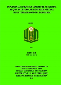 XMLRiska Ayu, 2022. “Implementasi Program Takhassus Menghafal Al-Qur‟an di Sekolah Menengah Islam Terpadu Cordova Samarinda”. Skripsi, Jurusan Pendidikan Islam Fakultas Tarbiyah dan Ilmu Keguruan Islam Universitas Islam Negeri (UIN) Sultan Aji Muhammad Idris Samarinda. Penelitian ini dibimbing oleh Wahdatun Nisa, MA. dan Indriana Rahmawati, M.Pd.