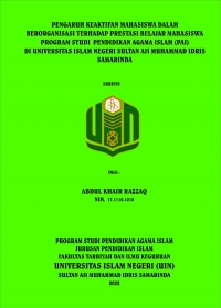 XMLAbdul Khair Razzaq, 2022. “Pengaruh Keaktifan Mahasiswa Dalam Berorganisasi Terhadap Prestasi Belajar Mahasiswa Program Studi Pendidikan Agama Islam (PAI) di Universitas Islam Negeri Sultan Aji Muhammad Idris Samarinda”. Skripsi Jurusan Pendidikan Islam, Fakultas Tarbiyah dan Ilmu Keguruan, Universitas Islam Negeri Sultan Aji Muhammad Idris (UINSI) Samarinda. Penelitian ini dibimbing oleh Dr. Suratman, M.Pd selaku pembimbing I dan Imroh Atul Musfirah, M.Pd.I selaku pembimbing II.