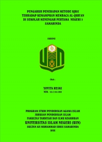 XMLYovita Reski, 2022. Pengaruh Penerapan Metode Iqra‟ Terhadap Kemampuan Membaca Al-Qur‟an di SMP 3 Negeri Samarinda. Skripsi, Program Studi Pendidikan Agama Islam, Jurusan Pendidikan Islam, Fakultas Tarbiyah Dan Ilmu Keguruan, Universitas Islam Negeri Sultan Aji Muhammad Idris Samarinda. Penelitian ini dibimbing oleh Bapak Dr. Iskandar, M. Ag. sebagai pembimbing I dan Ibu Imroh Atul Musfiroh, M. Pd. I sebagai pembimbing II.