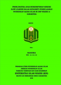 Latar belakang penelitian ini adalah sekolah inklusi yang merupakan perwujudan dari Pendidikan Inklusi yang dibuat pemerintah melalui mentri pendidikan dan kebudayaan dalam permendikbud No. 70 Tahun 2009 tentang Pendidikan Inklusi bagi peserta didik yang memiliki kelainan dan kecerdasan atau bakat istimewa. Dalam penyelenggarannya pendidikan inklusi ternyata mengalami hambatan salah satunya terjadi pada siswa dimana 21,18% ABK mengalami kesulitan pada setiap mata pelajaran. Salah satunya dialami oleh anak slow learner. adanya sekolah inklusi memberikan kesempatan bagi anak slow learner untuk belajar bersama dengan anak normal lainnya untuk mendapatkan hak pendidikan salah satunya mendapatkan Pendidikan Agama Islam. Agama Islam merupakan mata pelajaran wajib bagi seluruh jenjang pendidikan. Belajar ilmu Agama Islam tidak memandang kondisi seseorang dari fisik mental ataupun perilaku karena anak berkebutuhan khusus slow learner juga berhak mendapatkan pendidikan. Namun saat ditelaah pada kondisi anak slow learner di SMP Negeri 36 Samarinda, beberapa hambatan terjadi saat mengikuti pembelajaran Pendidikan Agama Islam karena keterbelakangan mental yang dialami. Penelitian ini bertujuan untuk mengetahui problematika dan cara guru dalam mengatasi problematika anak berkebutuhan khusus slow learner dalam mengikuti pembelajaran Pendidikan Agama Islam di SMP Negeri 36 Samarinda.