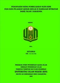 XMLSetiawan, NIM. 1811101321, Jurusan Pendidikan Islam Studi Pendidikan Agama Islam, Universitas Islam Negeri Sultan Aji Muhammad Idris (UINSI), “Pemanfaatan Media Pembelajaran oleh Guru pada Mata Pelajaran Aqidah Akhlak di Madrasah Ibtidaiyah Darul Falah I Samarinda”. Skripsi ini dibawah bimbingan bapak Muhammad Iwan Abdi, M.SI, selaku pembimbing I dan bapak Fathur Rahman S.Si,.M.S i, selaku pembimbing II.