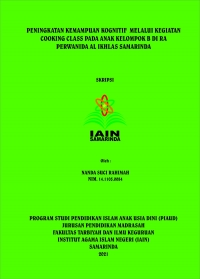 XMLNanda Suci Rahimah, 2021. Peningkatan Kemampuan Kognitif Melalui Kegiatan Cooking Class Pada Kelompok B Di RA Perwanida Al Ikhlas Samarinda. Skripsi Program Studi Pendidikan Islam Anak Usia Dini, Jurusan Pendidikan Madrasah, Fakultas Tarbiyah dan Ilmu Keguruan, Institut Agama Islam Negeri (IAIN) Samarinda. Penelitian ini dibimbing oleh Drs. Ahmad Riyadi, S.S., M.Hum dan Nurwati, M.Pd.