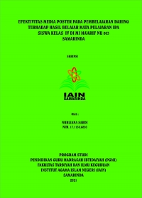 XMLNurliana Sardi. 2021. “Efektivitas Media Poster Pada Pembelajaran Daring Terhadap Hasil Belajar Mata Pelajaran IPA Siswa Kelas IV di MI Ma’arif NU 003 Samarinda”. Dibawah bimbingan Bapak Drs. Khairul Saleh, M.Ag selaku pembimbing I dan Ibu Lely Salmitha, M.Pd sebagai pembimbing II. Skripsi, Program Studi Pendidikan Guru Madrasah Ibtidaiyah, Fakultas Tarbiyah dan Ilmu Keguruan, Universitas Islam Negeri Sultan Aji Muahammad Idris Samarinda.