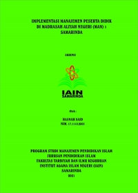 XMLHasnah Said, 2021. “Implementasi Manajemen Peserta Didik di Madrasah Aliyah Negeri (MAN) 1 Samarinda. Skripsi, Prodi Manajemen Pendidikan Islam Jurusan Pendidikan Islam Fakultas Tarbiyah dan Ilmu Keguruan Institut Agama Islam Negeri Samarinda”. Bimbingan Bapak Dr. Muhammad Nasir, M.Ag selaku pembimbing I dan Bapak Dr. Suratman, M.Pd selaku pembimbing II.