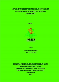 Latar belakang penelitian ini adalah adanya kendala mengenai penyebaran informasi Implementasi Sistem Informasi Manajemen di Sekolah Menengah Atas Negeri 8 Samarinda. Karena jika melihat penyampaian dari Lukman Hakim yang mengatakan perkembangan teknologi saat ini membuat sistem informasi manajemen lebih dititikberatkan kepada penyajian data informasi kepada pengguna, melalui media informasi berbasis web atau media lain, yang sebelumnya data informasi hanya untuk keperluan internal saja. Namun begitu, data informasi yang diberikan sekolah masih dapat diterima, dengan cara meminta izin akses kepada operator, yang berlaku untuk seluruh stakeholder sekolah, dalam hal ini upaya sekolah juga ialah menerapkan sebuah media yang dapat mendukung proses penyebaran akses informasi untuk pengguna. Oleh karena itu yang membuat penulis merasa tertarik melakukan penelitan dengan judul Implementasi Sistem Informasi Manajemen di Sekolah Menengah Atas Negeri 8 Samarinda. Adapun tujuan dari penelitian ini yaitu untuk mengetahui Implementasi Sistem Informasi Manajemen di Sekolah Menengah Atas Negeri 8 Samarinda.