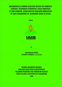 Based on the background of this research, writing is one of the difficult skills for all language users whether the language is the first, second, or foreign language. In English, students are expected to understand grammar well. As we know that grammar is the most important part of studying English; because the students learn about how to construct the writing and utterance correctly. In the English Education at IAIN Samarinda, the students often make mistakes in writing and lack grammatical structure. The purpose of this research is to describe the types of grammatical errors and to find out which type of errors in terms of surface strategy taxonomy that is committed most frequently in the students’ essay writing in the fourth semester of English Education at IAIN Samarinda in Academic Year 2019/2020