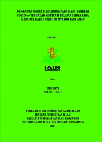 XMLWinarti, 2021. “Pengaruh Model E-Learning Pada Masa Pandemi Covid-19 Terhadap Motivasi Belajar Siswa Pada Matapelajaran Fiqih di MTs DDI Tani Aman. Skripsi, Jurusan Pendidikan Islam Fakultas Tarbiyah dan Ilmu Keguruan Institut Agama Islam Negeri (IAIN) Samarinda”. Penelitian ini dibimbing oleh Ahmad Muthohar, M. Si dan Indriana Rahmawati, M. Pd.